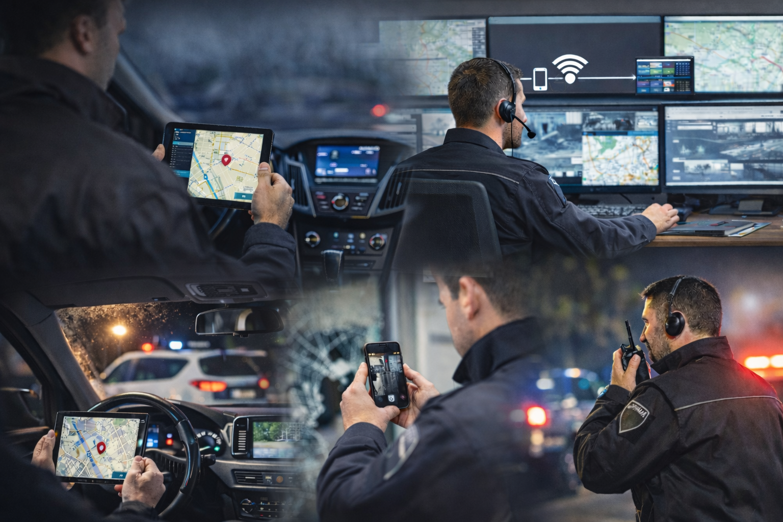 Les agents et les véhicules de patrouille sont reliés au C.O.S. via des systèmes sécurisés :